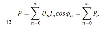 上式中,當n僅取一個值時,例如:n=1,上式成為基波有功功率計算公式;n=3,上式成為三次諧波有功功率計算公式。
